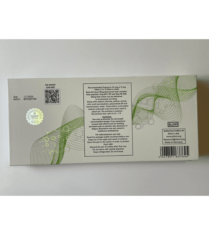 The Synedica TB-500 40mg Injection Pen Kit delivers an advanced blend of two well-known regenerative peptides in a convenient, easy-to-use pen system. This combination is often selected for research involving recovery, tissue repair, and regeneration due to its synergistic profile.